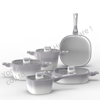 Moderne gegoten aluminium kookset lichtgrijs 20/24/28 cm antiaanbakpannen & 28 cm braadpan inductie geschikt glazen deksel