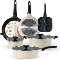 Heetverkopende keukengerei crèmekleurige afneembare kunststof handgreep antiaanbakpan kookgerei sets gehard glazen deksel 5-delig modern